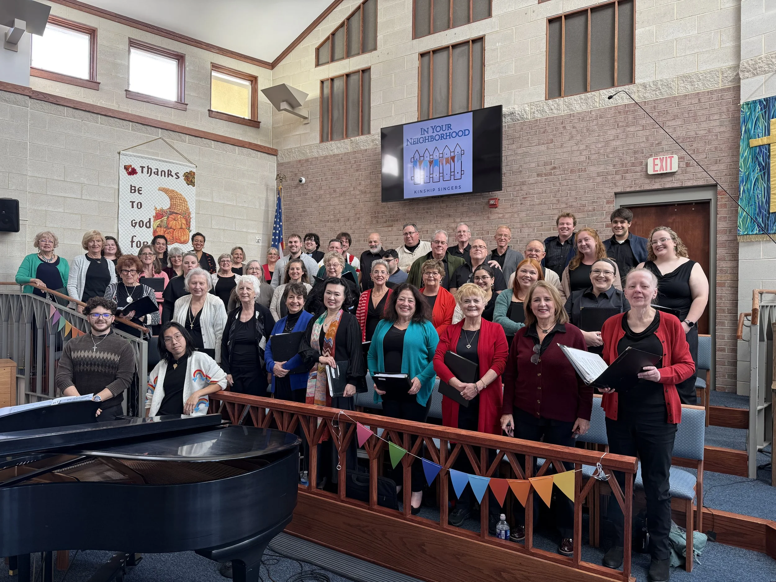 Kinship Singers is a non-auditioned, SATB community ensemble based in Damascus, MD, that sings in a broad variety of musical styles and genres. The group started meeting in January 2024 and grew to about 50 members by the close of its inaugural season. We are committed to growing and representing the demographics of our community in our membership and programming.